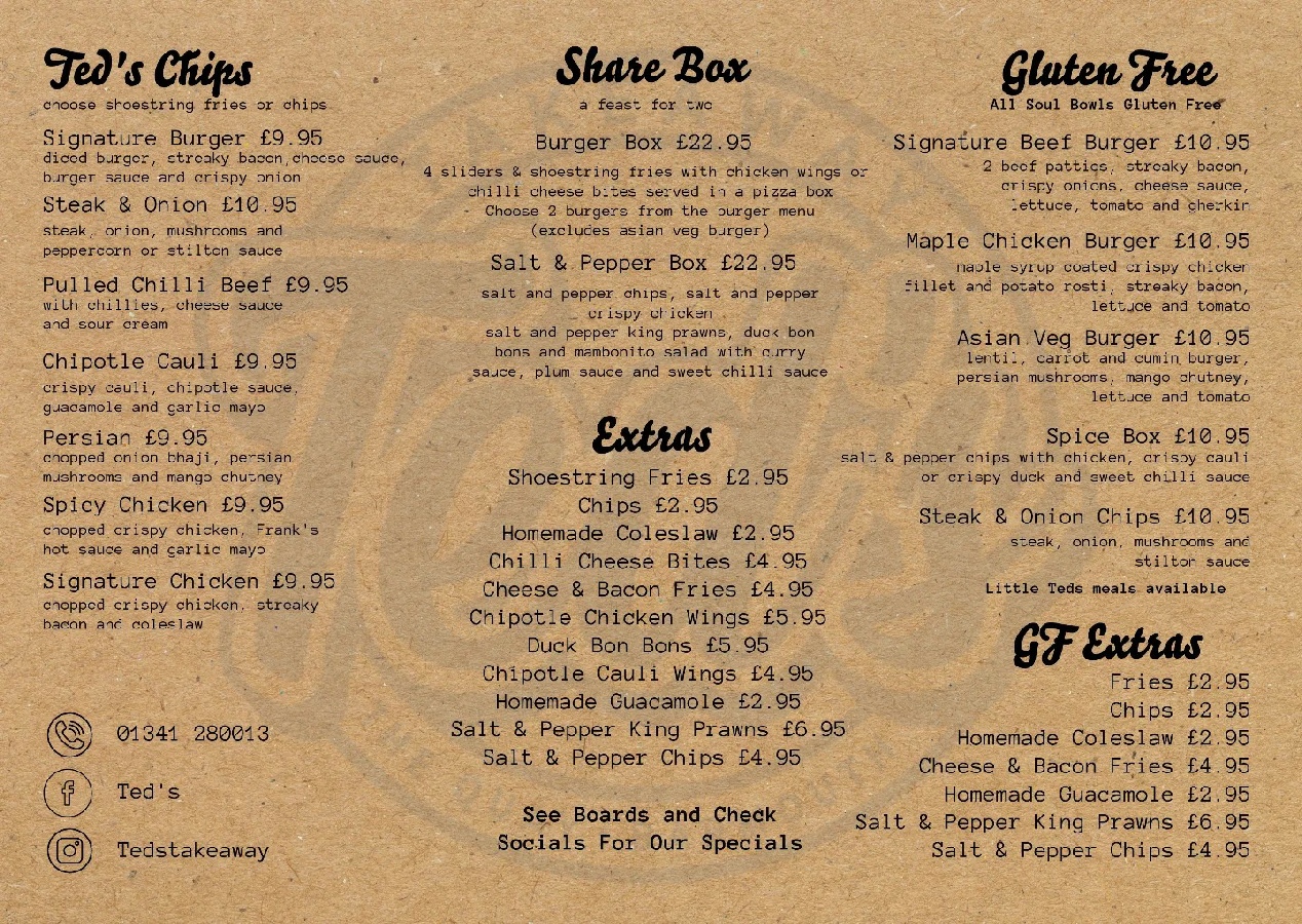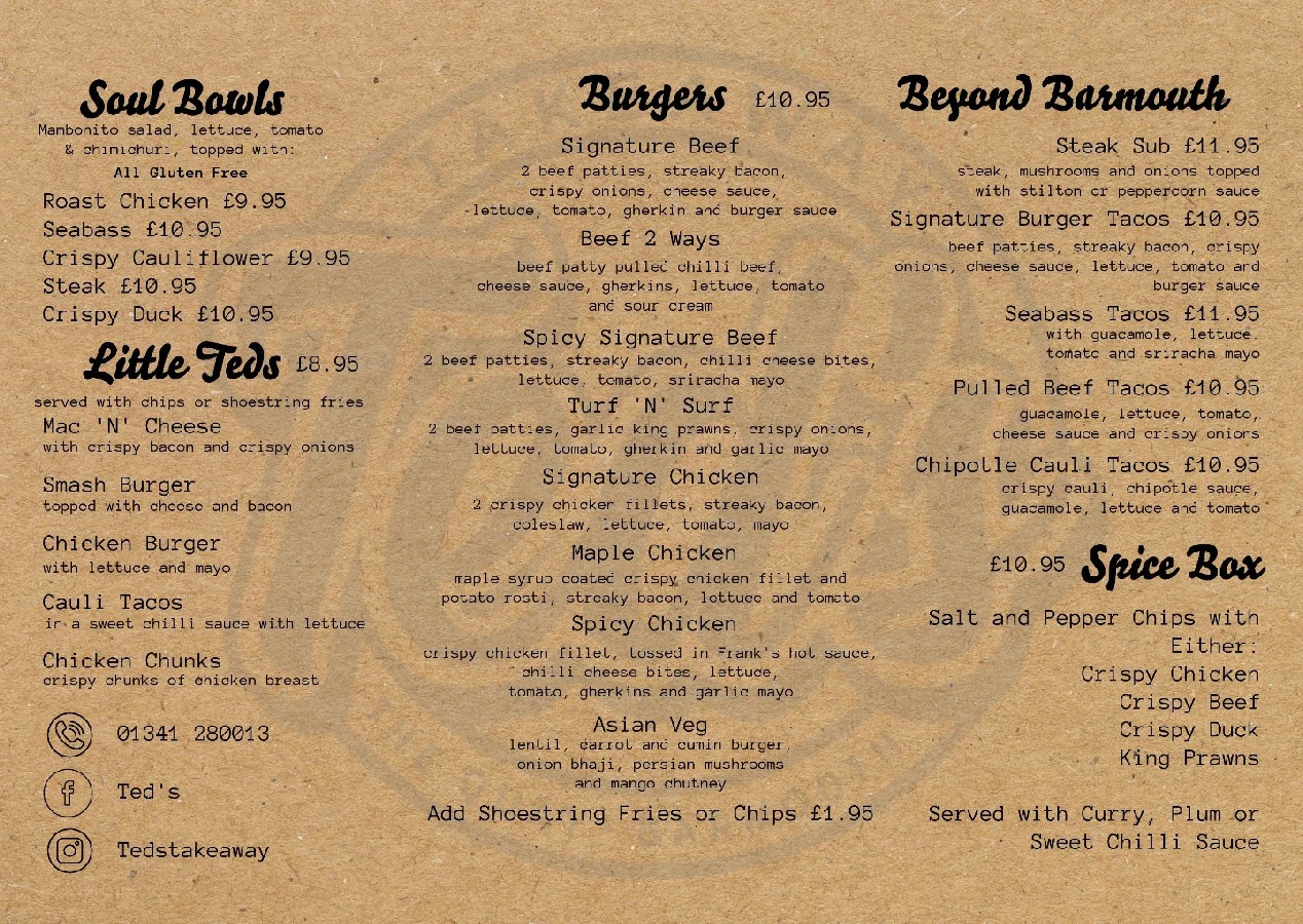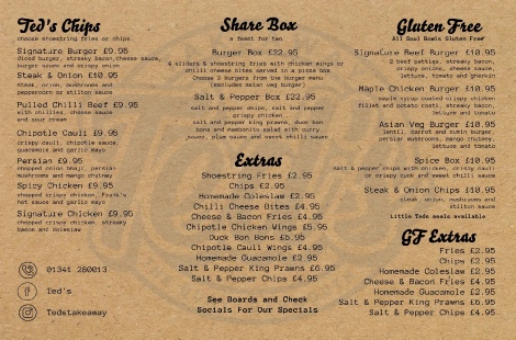 “Had are first meal from Ted's today and what can I say it was really lovely. Cooked fresh while you wait. The staff are extremely friendly and helpful. Would recommend everyone gives them a try we will definitely be back.” Louise Scarfe (FB)